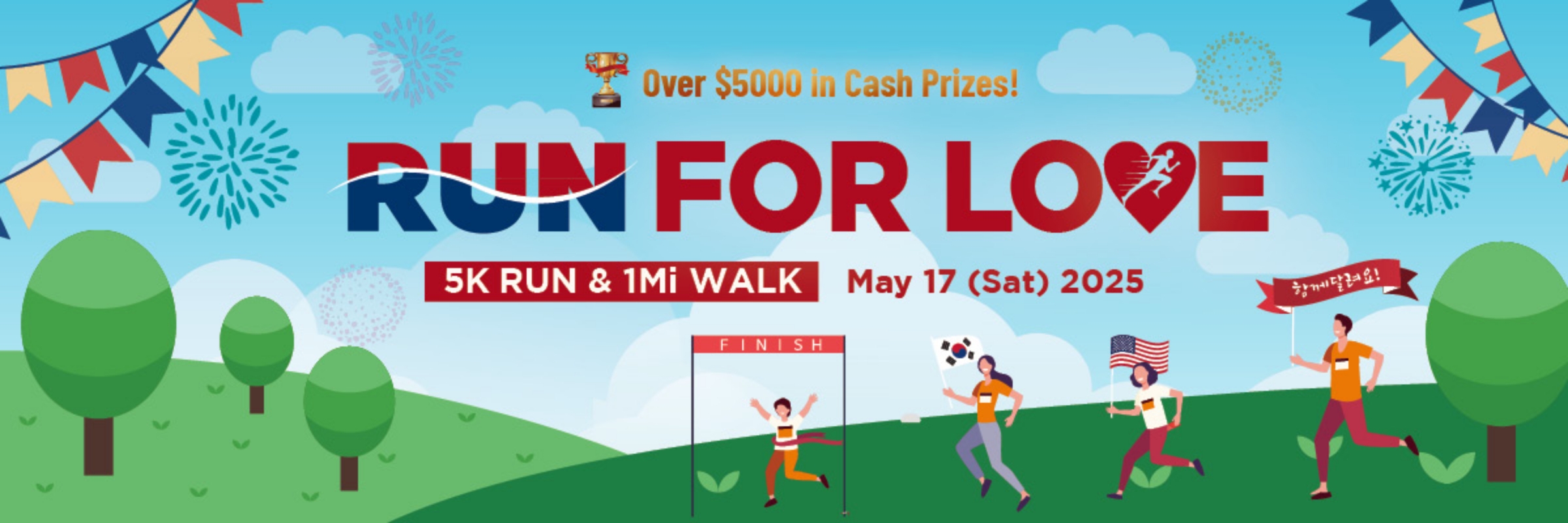 One Heart, Better Health Since 2006, the annual Run for Love 5K has been a festive event for the Korean American community, promoting health, goodwill, and unity. In celebration of the 30th anniversary of Christian Mutual Med-Aid (CMM), CMM is honored and proud to co-host this year's Run for Love with KG Runners Club. Please join us on May 16th. Race Day Schedule: 06:40 Am | Registration & Packet Pick-up 07:30 Am | Opening Ceremony 07:50 AM | Line-Up 08:00 AM | 5K Run Start 08:10 AM | 1 Mile Walk Start 08:50 AM | Race Finish 09:00 AM | Awards Ceremony 09:45 AM | Closing Ceremony Course & Time Participants will have 50 minutes to complete their chosen course. 5K Run Awards Individual Awards - Male and Female 1st, 2nd, 3rd Place - Male and Female Age Group 1st, 2nd, 3rd Place * Walking: No awards given. Age Groups Under 12, 13-24, 25-44, 45-64, 65-74, and 75 & over. Participant Packet Pick-up Instructions Participant Packet Pick-up will take place at CMM Christian Medical Mutual (2315 Sanders Rd, Northbrook, IL 60062) on the following dates: May 14, 2026 (Thu): 3:00 PM – 7:00 PM May 15, 2026 (Fri): 3:00 PM – 7:00 PM Quick Participant Packet Pick-up Guide 1️⃣ Find Your Bib (5K Runners Only): Check your bib at the Bib Lookup [Link] 2️⃣ Print Your Registration Confirmation: Locate the “Run for Love Registration Confirmation” email from <info+auto@runsignup.com> and print it. Email includes your T-shirt size 3️⃣ Pick Up Your Packet: Bring your printed confirmation to collect your race gear. 1-Mile walkers: No bib assigned → proceed directly to Step 2 🕖 Race Day Pick-up Saturday at 7:00 AM at the race location. Advance pick-up recommended to ensure a timely start and avoid delays. ⚠️ Note The RUN FOR LOVE 5K organizers may revise these terms and conditions at any time without prior notice
